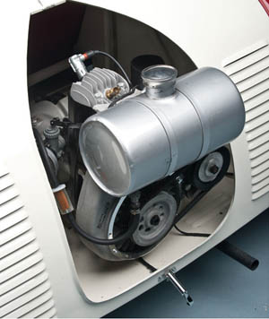 with its cylindrical fuel tank, sat nakedly out in the open on the tail.