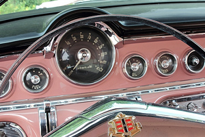 High Bid of $51,000 on October 10, 2014 270 CI Super Red Ram Hemi engine Dual exhaust Automatic Transmission Heather Rose and Sapphire White paint Stainless steel rear gravel guards and drip moldings |