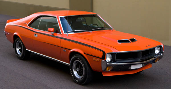 5-7, 2015 - Russo & Steele - Newport Beach, California Produced from 1968 through 1974, the AMC Javelin was inserted into American Motors lineup as their pony car answer to the competition put forth by Detroit's Big Three: GM, Ford and Chrysler. To fit into a wide variety of budgets, AMC offered the Javelin with a variety of engines that included everything from the stately 232 cubic-inch inline-six variant all the way up to the mightiest of AMCs eight-cylinder power plants. At Javelins introduction, the 343 cubic-inch four-barrel V-8 was a serious performance machine that offered with 280 horsepower and 365 foot-pounds of torque on tap, while the cars were made available with optional disc brakes and wide tires that helped keep the power under control. AMCs previous attempt at a Mustang beater had been in the form of the erstwhile Rambler Marlin for 1965. Undaunted, AMC’s chief designer (and Packard/Studebaker veteran) Richard A. Teague quickly revised the design that resulted in the AMX concept cars that dawned late in the 1960’s. Pressured by AMCs upper management as well as by those with serious financial interests in the company, the Javelin production car that resulted from these prototypes was sent to market. Javelin borrowed heavily from the AMX concept’s design and was considered by many to be sporty, modern and attractive in one package. The design was uncluttered and smooth with its split front grille and semi-fastback roofline while the interior featured opulently-appointed front bucket seats and rear bench for a mid-range car of its caliber. The standard suspension was comprised of coil springs and unequal-length wishbones in the front and semi-elliptic leaf springs and sold axle in the rear. |