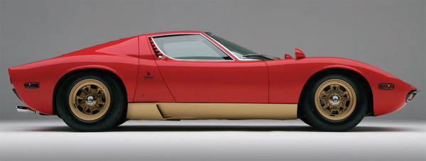 Sold for $2,310,000 on March 14, 2015 385 bhp, 3,929 cc DOHC transverse mid-mounted alloy V-12 engine with four Weber twin-choke carburetors, five-speed manual transmission, independent front and rear suspension with A-arms, coil springs with tubular shocks, and anti-roll bars, and four-wheel hydraulic disc brakes. Wheelbase: 98.42 in. The factory publicity and U.S.-homologation prototype The cover car of both Lamborghini Miura and The Lamborghini Miura Bible Formerly owned by Joe Sackey and beautifully restored by Miura guru Gary Bobileff Retains its original sperimentale engine; the finest example available for sale |