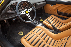 Correct factory Daytona Beige and Black 'chairs' interior. Factory optioned air conditioning. Removable hardtop Original factory matching numbers 2.4L six cylinder engine. Factory 5-speed manual transmission . Original factory wheels and tires . 1 of 1,274 GTS Dinos built between 1972 and 1974. Original factory manuals |