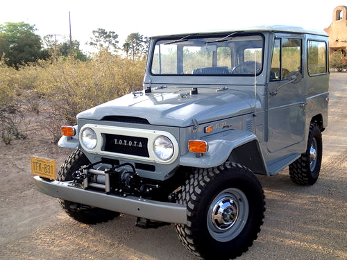 Museum quality, this 1973 Heath Grey Toyota Land Cruiser FJ40 Hardtop has received a frame-off, hand-built, nut-and-bolt rotisserie restoration. Equipped with a factory PTO winch, it is exact to original manufacturer’s specifications and appears just as it did when it rolled off the ARACO Toyota production line back in 1973. There are well in excess of 1,000 hours in this build, and probably just as many in research and parts acquisition in order to maintain integrity. This restoration is unique in that it began as a “survivor” – an incredibly complete and unmolested specimen. All components are original to the vehicle and meticulously refurbished. The entire vehicle was disassembled and catalogued. All hardware and adornments were retained, cleaned, yellow zinc-plated, or re-chromed per factory specification. |