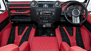 icon has been going about its business quietly and efficiently. Defender has always been one of the world’s toughest and most relentless go-anywhere vehicles. That ‘anywhere’ would traditionally have been vertical mountainsides and searing desertscapes, rather than elite cultural events and tree-lined boulevards. But that changed forever, with the introduction of a new 2014 facelift defender. This is recognizable as a Land Rover, but like no Land Rover ever seen before. The wide 20” Mondial wheels in piano black with a precision diamond cut finish give the vehicle a muscular stance. The wheels are covered by powerful extended arches in sensual satin black; a colour echoed in the roof finish. The exterior enhancements are almost too numerous to list, but the Kahn bumper with piercing integral spot lights and robust sump guard, stainless steel twin crosshair exhaust system and mesh bonnet & side vents are notable additions. The most impressive element of the whole ensemble is the imposing new X-Lander grille and headlamp surround. This changes the face of the Defender and lends an air of brutish power, yet combines it with elegant sophistication. The X-Lander has been designed to be an easy installation, using the factory mounting points, yet has distinct paint areas that allow almost immeasurable customization. If the commanding and purposeful exterior bludgeons the senses, then the antidote is in the svelte and luxurious cabin. Figure hugging GTB seats, hand trimmed in soft, quilted, perforated leather are a foil to the precise machined aluminium pedals and tastefully re-faced instrumentation. The leather steering wheel and Harris Tweed interior detailing are the finishing touches that complete this distinguished interior. Discreet Kahn branding completes the package and leaves no-one in any doubt as to the source of this elegant functional design and meticulous attention to detail. You will never look at a Defender in the same way again. |